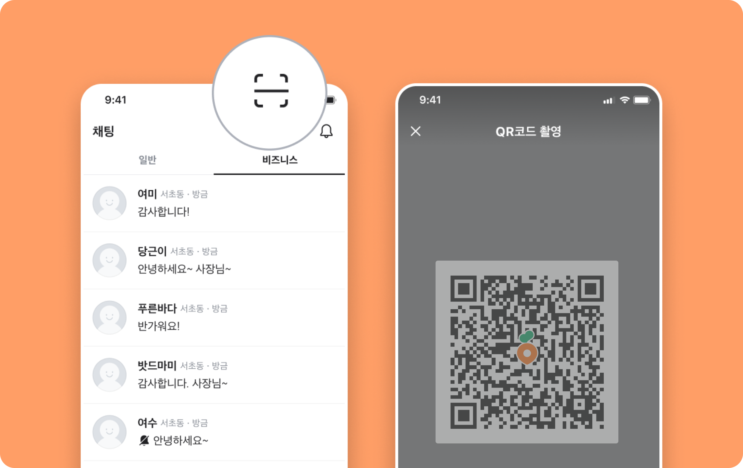 휴대기기에서 당근 앱을 열어 채팅 탭으로 이동 후, 상단의 스캔 버튼을 클릭해주세요.클릭해 주세요. PC 화면의 QR 코드를 스캔하고, 인증 완료 버튼을 클릭해 주세요.